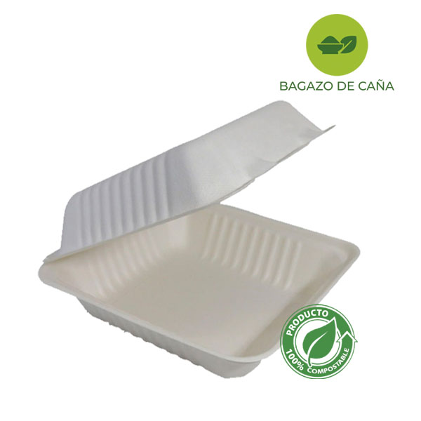 CONTENEDOR LISO COMPOSTABLE CAÑA 9X9 C/50