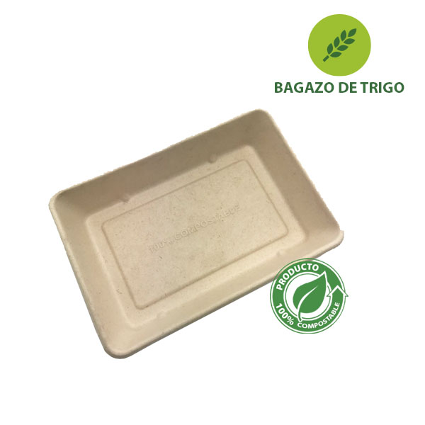 HAMBURGUESERO BIODEGRADABLE COMPOSTABLE BAGAZO DE TRIGO 6X6 BIORANGE 500 PZ.