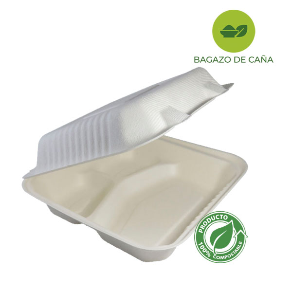 CONTENEDOR COMPOSTABLE PULPA 9X9 C/DIVISIÓN RT C/50