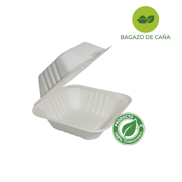 HAMBURGUESERO BIODEGRADABLE COMPOSTABLE PULPA DE CAÑA DE AZÚCAR 6X6 BIO-INIX 2/125 PZ.