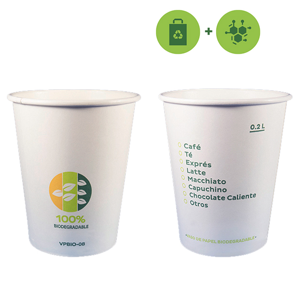 VASO BIODEGRADABLE COMPOSTABLE PAPEL+PLA PARA BEBIDA CALIENTE 08OZ. BIO-INIX 20/50 PZ.